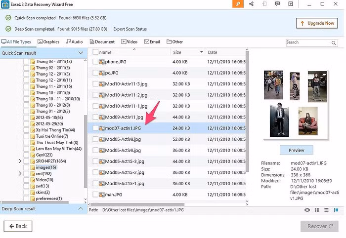 EaseUS Data Recovery Wizard cho phép bạn xem trước tập tin trước khi phục hồi, người dùng có thể thay đổi chế độ hiển thị thông qua các nút nhỏ ở góc phải bên dưới.