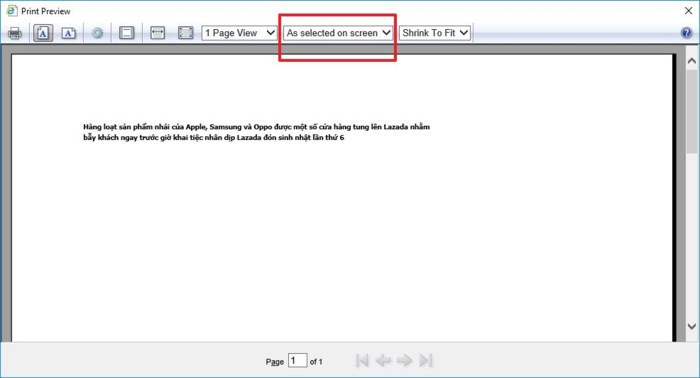 Riêng Microsoft Edge vẫn chưa hỗ trợ người dùng in vùng chọn nhưng thay vào đó Internet Explorer lại hỗ trợ chức năng này. Để in vùng chọn trên Internet Explorer, bạn bấm phím Alt, sau đó vào File > Print Preview, và chọn tùy chọn As selected on screen (phím tắt Alt + F) từ thanh công cụ ở trên cùng.
