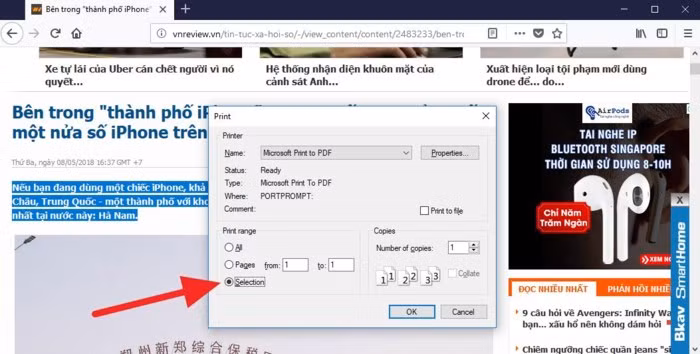 Việc chỉ in đoạn văn bản được chọn từ một trang web không có gì mới. Tuy vậy, mỗi trình duyệt lại thực hiện việc này theo một cách khác nhau. Trên Chrome, bạn chỉ cần chọn đoạn văn bản, nhấp chuột phải, và chọn Print. Trên Firefox, bạn cần chọn đoạn văn bản bạn muốn in trên trang, nhấn Ctrl + P, và sau đó chọn Selection từ hộp thoại Print Range.