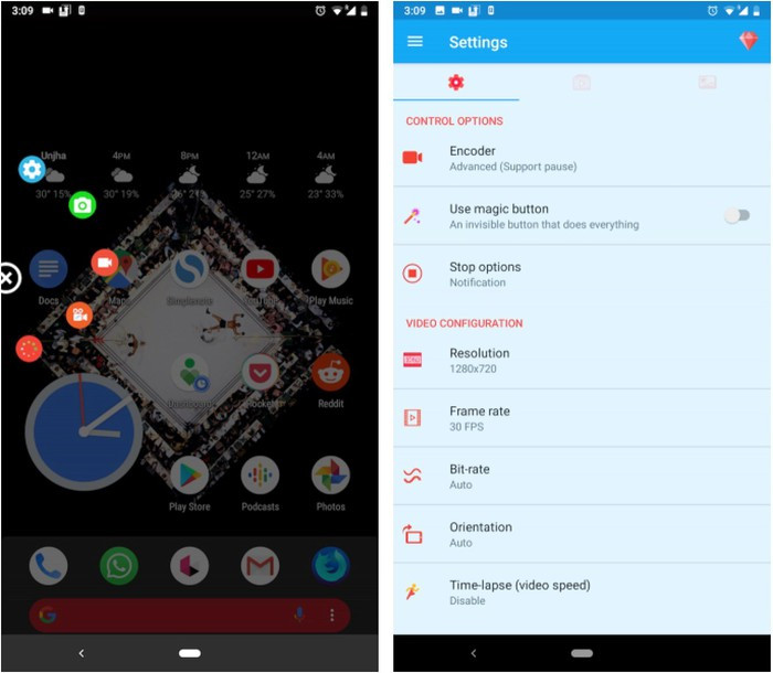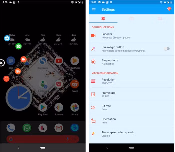 Bắt đầu từ bản cập nhật iOS 11, Apple đã tích hợp thêm tính năng quay phim màn hình. Tuy nhiên, nhiều dòng điện thoại Android vẫn cho được trang bị tính năng này và phải sử dụng các giải pháp bổ sung của bên thứ ba, đơn cử như AZ Screen Recorder, REC… Nó cho phép người dùng tinh chỉnh hàng loạt như cài đặt độ phân giải video, tỉ lệ khung hình.
