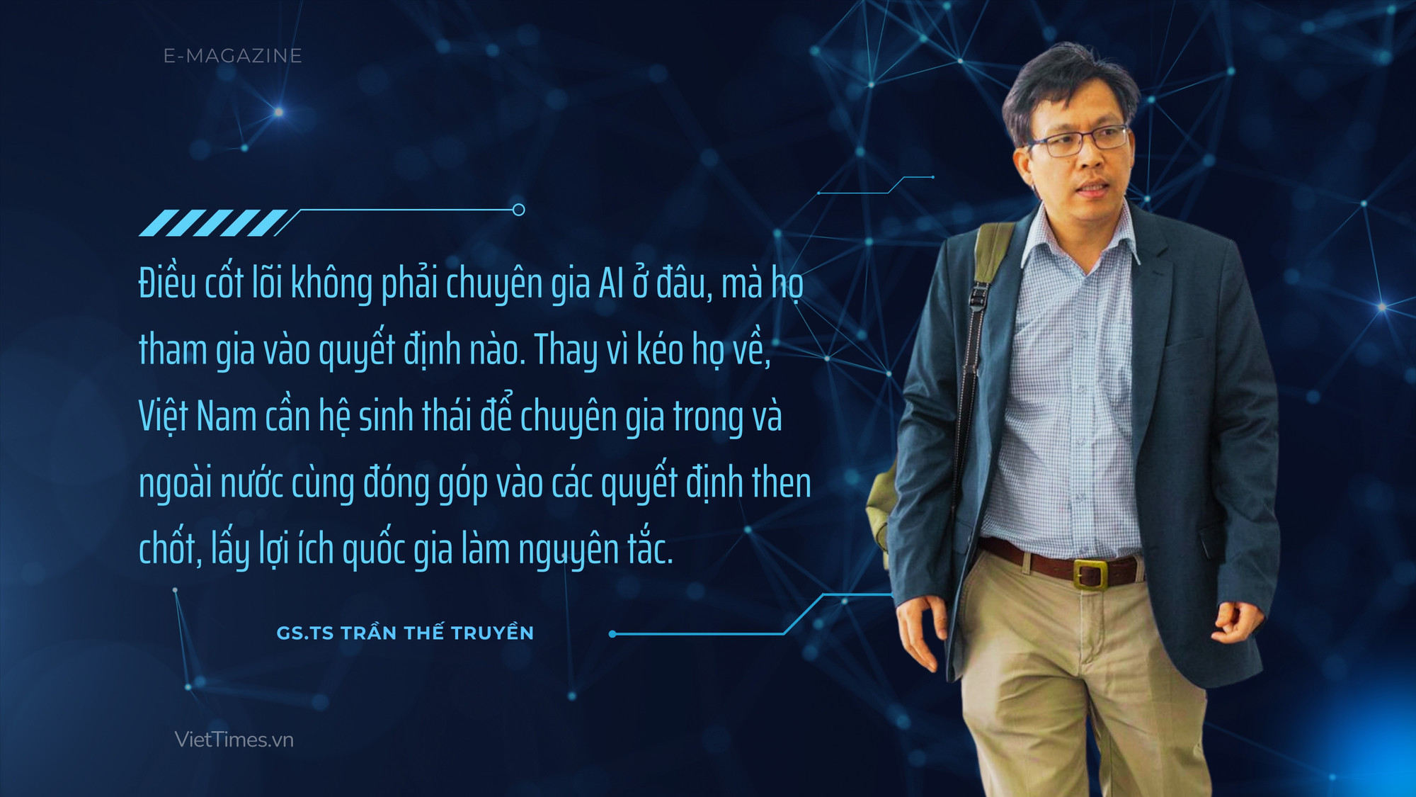 - Cá nhân tôi gắn bó với AI Việt Nam không chỉ vì đó là việc có ích cho quê hương, được góp phần vào một Việt Nam hùng cường, mà còn vì tôi được làm việc với những con người chất lượng, thú vị và tiếng nói của mình được lắng nghe. Với chuyên gia quốc tế, có bốn yếu tố tạo động lực để họ sẵn sàng đầu tư danh tiếng vào Việt Nam.
