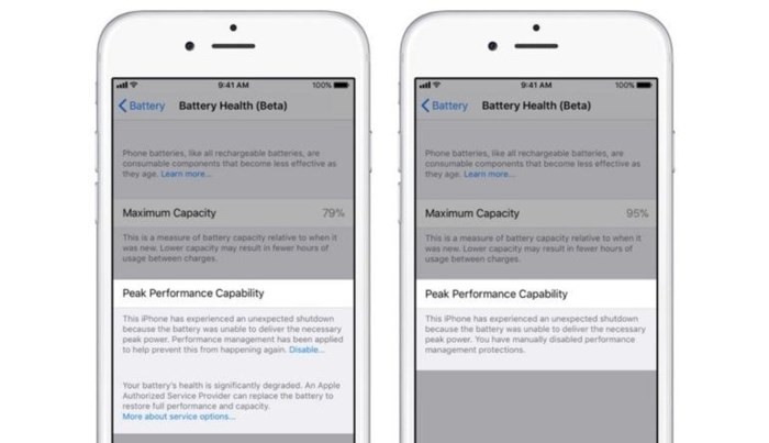 Tháng 12/2017, có thông tin cho rằng Apple cố tình làm chậm các thiết bị cũ bằng cách tiến hành tinh chỉnh trên hệ điều hành iOS, cụ thể hiệu suất của các phiên bản iPhone cũ giảm đi rất nhiều và pin có dấu hiệu bị mài mòn. Vấn đề ở đây là rất nhiều người dùng không biết nguyên nhân nào khiến pin bị hao mòn.