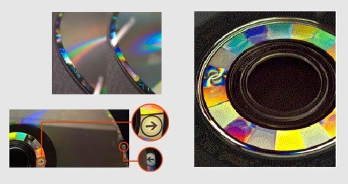 Trong khu vực dải gương bên trong (IMB) có một mũi tên chỉ báo với một điểm hướng ra cạnh ngoài của đĩa. Ngoài ra còn có một mũi tên chỉ báo tương ứng nhỏ trên dải OMB mỏng, đối mặt với phiên bản IMB lớn hơn nhiều. Hai yếu tố này phải được liên kết trực tiếp với nhau.