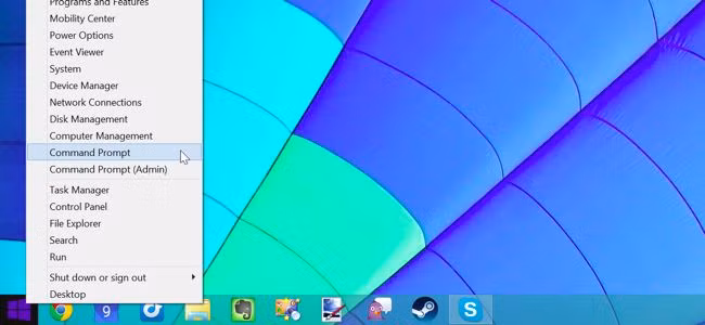 Trên Windows, cách tốt nhất để nhận diện xem đã đến lúc thay pin cho laptop hay chưa đó là xem bản báo cáo dùng pin để xem pin đã mòn quá nhiều hay chưa. Để làm điều này, bạn mở Command Prompt bằng cách click chuột phải vào bên dưới góc trái màn hình và chọn "Command Prompt".