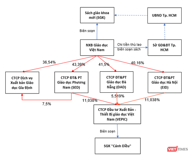 Theo dữ liệu của VietTimes, SED cùng các pháp nhân là CTCP Đầu tư và Phát triển Giáo dục Đà Nẵng (Mã CK: DAD) và CTCP Đầu tư và Phát triển Giáo dục Hà Nội (Mã CK: EID) tham gia góp vốn tại CTCP Đầu tư Xuất Bản - Thiết Bị giáo dục Việt Nam (VEPIC). Tỷ lệ sở hữu của các pháp nhân này tại VEPIC có lúc lên tới 90,09%, trong đó, SED và EID là những cổ đông lớn nhất (với tỷ lệ sở hữu của mỗi công ty ở mức 36,036%).