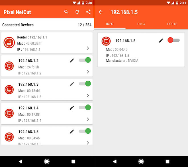 Ngoài ra, Pixel NetCut cũng được tích hợp một số công cụ chẩn đoán mạng rất hữu dụng. Chẳng hạn, khi bạn chọn một thiết bị từ danh sách, bạn có thể thấy cổng (port) nào đang còn trống, cũng như thời gian ping và độ trễ. Tóm lại, nó là tiện ích tuyệt vời với rất nhiều chức năng mạnh mẽ.