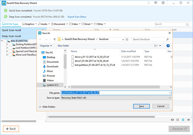 Ngoài ra, bạn cũng có thể xuất kết quả quét bằng cách nhấn nút Export Scan Status và nhập kết quả quét để thực hiện quá trình khôi phục khác mà không cần quét lại nhờ nhấn nút Import Scan Status.