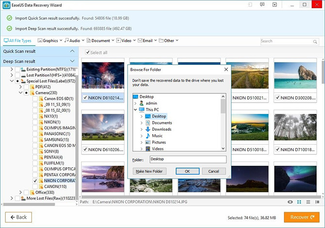 Sau khi xem trước hoặc tìm kiếm, bạn có thể chọn tập tin đích và nhấn nút Recover để phục hồi và lưu lại chúng trên máy tính hoặc thiết bị lưu trữ.