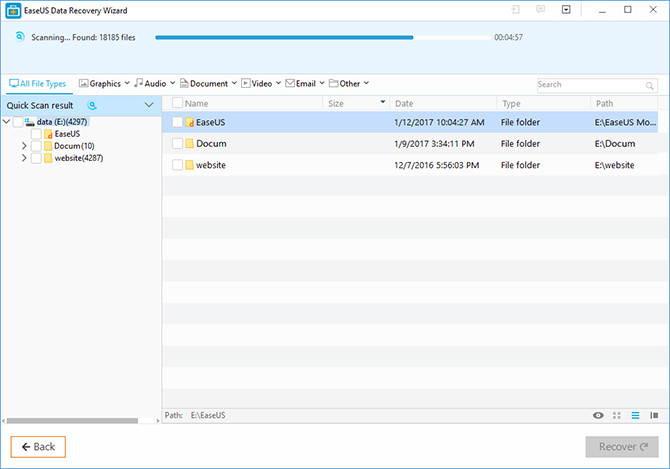 Giao diện kết quả quét sẽ được chia làm 3 phần. Ở phía bên trái là danh sách Directory Tree,cung cấp cho bạn 3 cách thức (theo Path, Type và Time) để nhanh chóng lọc file. Cửa sổ ở giữa sẽ hiển thị tất cả file và thư mục trong thư mục đựa lựa chọn ở cửa sổ bên trái với nhiều thông tin hơn (Date & Type). Cửa sổ ở phía bên phải sẽ hiển thị một hình thu nhỏ và thông tin cho file được lựa chọn ở cửa sổ giữa. Nó cung cấp tùy chọn Preview để xem trước file trong chương trình.