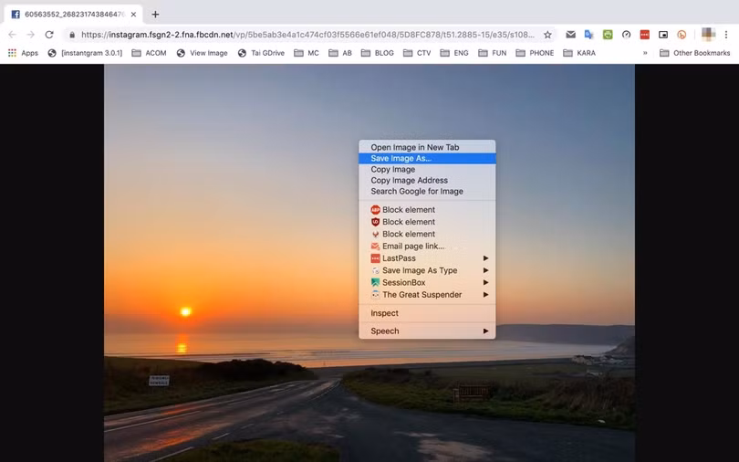 Không giống các trang mạng xã hội khác, như Facebook, bạn không thể nhấp chuột phải lên ảnh và chọn Save as. Tùy chọn Save as vẫn nằm ở đó, nhưng nó sẽ tải về trang web HTML, không phải file ảnh.