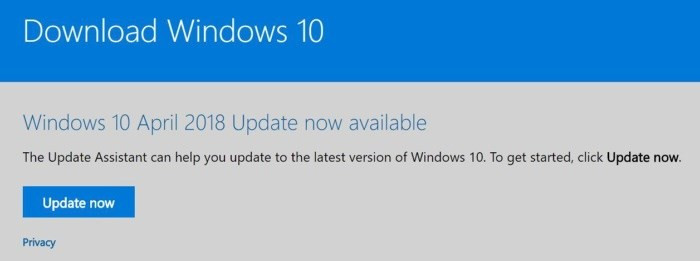 1. Tải về Windows 10 April 2018 Update Assistant từ trang web của Microsoft.