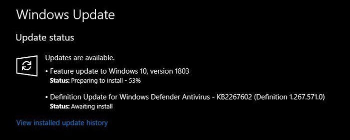 Để kiểm tra xem máy tính của bạn có thể nhận bản cập nhật Windows 10 April 2018 Update ngay từ hôm nay thông qua Windows Update hay chưa, bạn vào Start > Settings > Update & Security > Windows Update. Kiểm tra mục Update Status ở phía trên cùng. Nếu bản cập nhật này khả dụng với bạn, bạn sẽ nhận được thông báo có nội dung Updates are available: Feature update to Windows 10, version 1803, vốn chính là tên kỹ thuật của bản cập nhật Windows 10 April 2018 Update.
