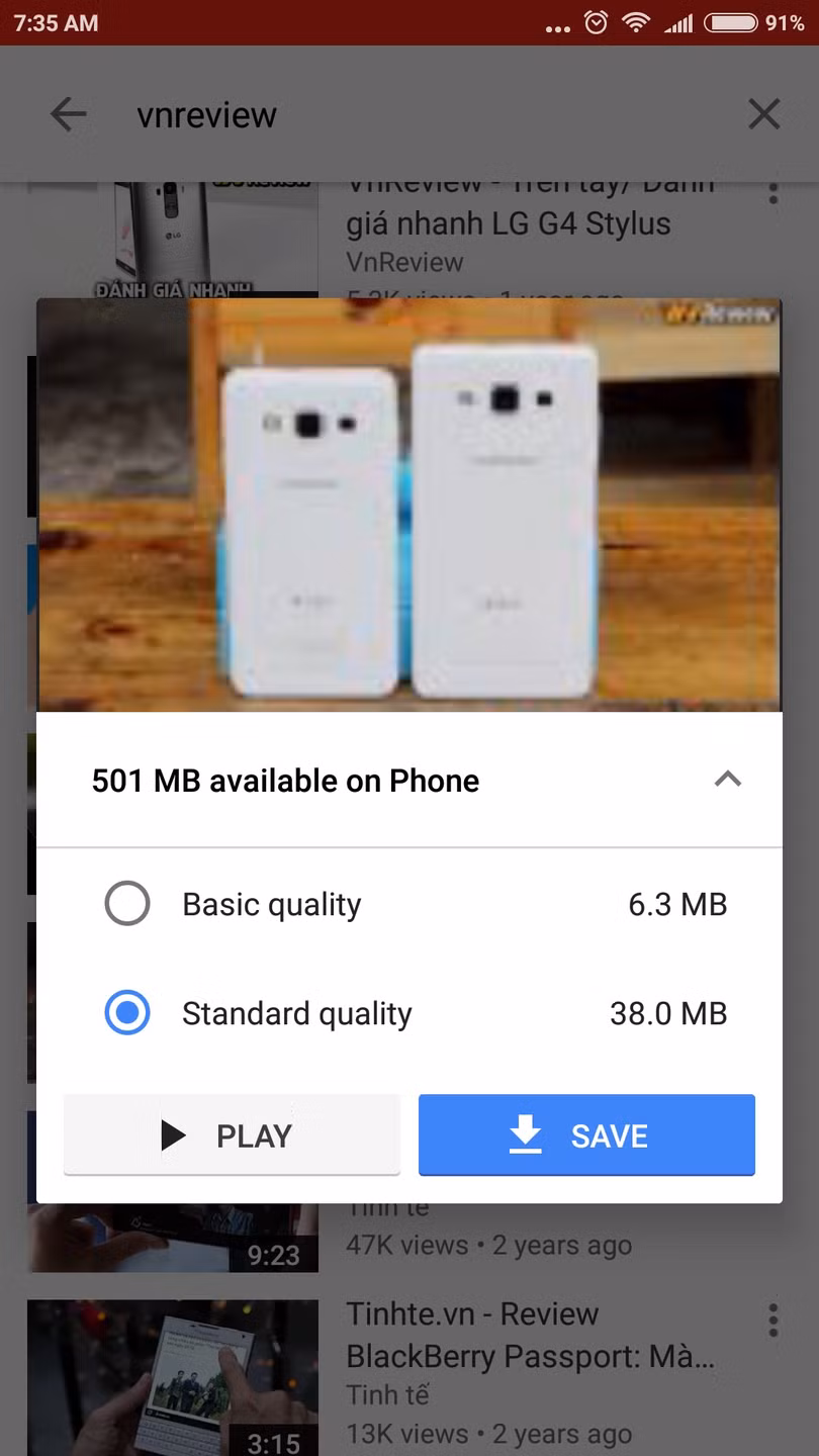 Khi đã tìm thấy video mong muốn, bạn chạm vào ảnh thu nhỏ của nó, chọn mức chất lượng và sau đó nhấn nút Save.