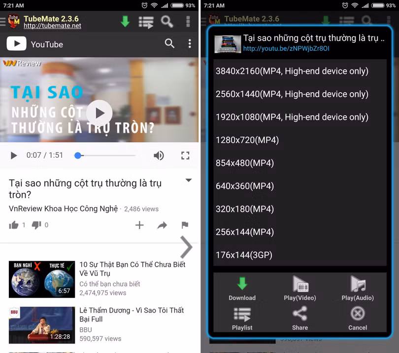 Tải video từ YouTube về xem offline sử dụng TubeMate