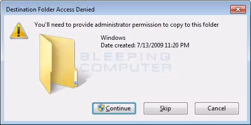 Sau đó, bạn hãy sao chép chương trình notepad.exe bằng tổ hợp phím Ctrl+C và dán nó bằng tổ hợp phím Ctrl+V. Khi dán, sẽ có thông báo hiện lên, bạn hãy bấm vào Continue.