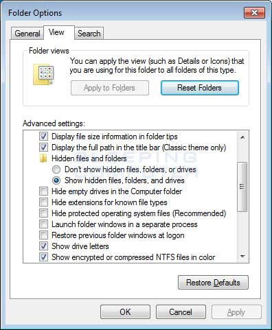 Đầu tiên, bạn cần phải cấu hình Windows để có thể hiển thị phần mở rộng của tập tin bằng cách mở Folder Option, chọn View và bỏ tích vào ô Hide extension for known file type.