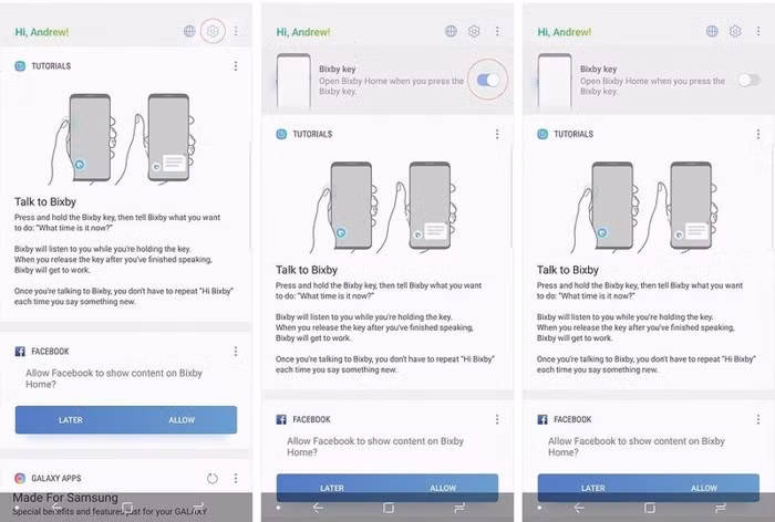 Một điều mà hầu hết mọi người muốn là vô hiệu hóa nút Bixby ở cạnh bên điện thoại. Để thực hiện, bạn hãy nhấn nút Bixby ở bên trái điện thoại (ngay dưới nút giảm âm lượng), tiếp theo, nhấn vào biểu tượng bánh xe răng cưa ở góc trên bên phải và tắt Bixby Key. Thực hiện tương tự nếu bạn muốn tắt Bixby Voice.