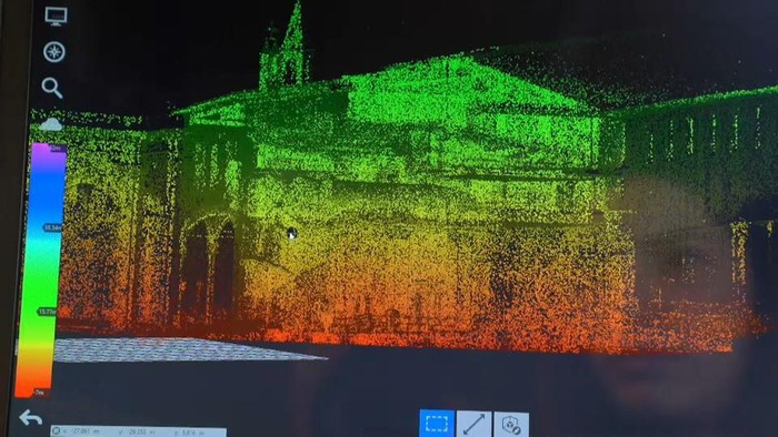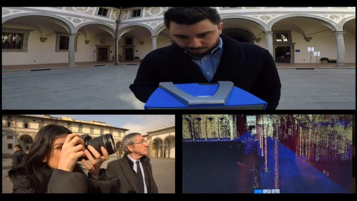 Nhóm nghiên cứu hiện bận rộn thu thập dữ liệu trực quan thông qua các máy quét 3D và phim 360 độ của tòa nhà. "Chúng tôi đang tạo ra một đám mây điểm, nghĩa là một tập hợp các tọa độ điểm trong không gian, với độ chính xác đến từng mm. Chúng tôi cũng thêm dữ liệu về màu sắc, đây sẽ là điểm khởi đầu cho mô hình ba chiều", Marco Medici, một trong những nhà nghiên cứu của dự án nói với Euronews.