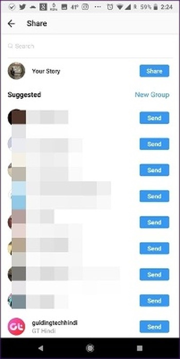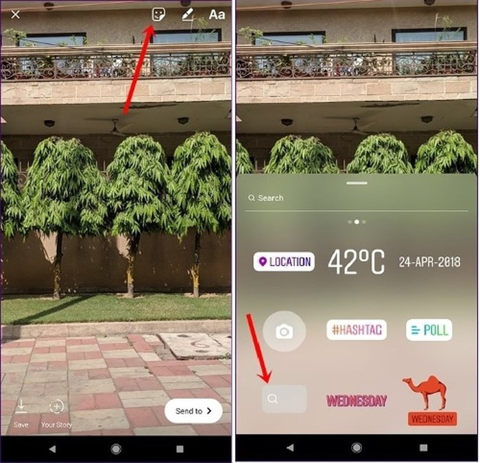 Tìm kiếm ảnh GIF mà bạn muốn tải lên và nhấn vào nó một lần để chèn vào. Cuối cùng, nhấn nút Send to để tải nó lên câu chuyện của bạn.