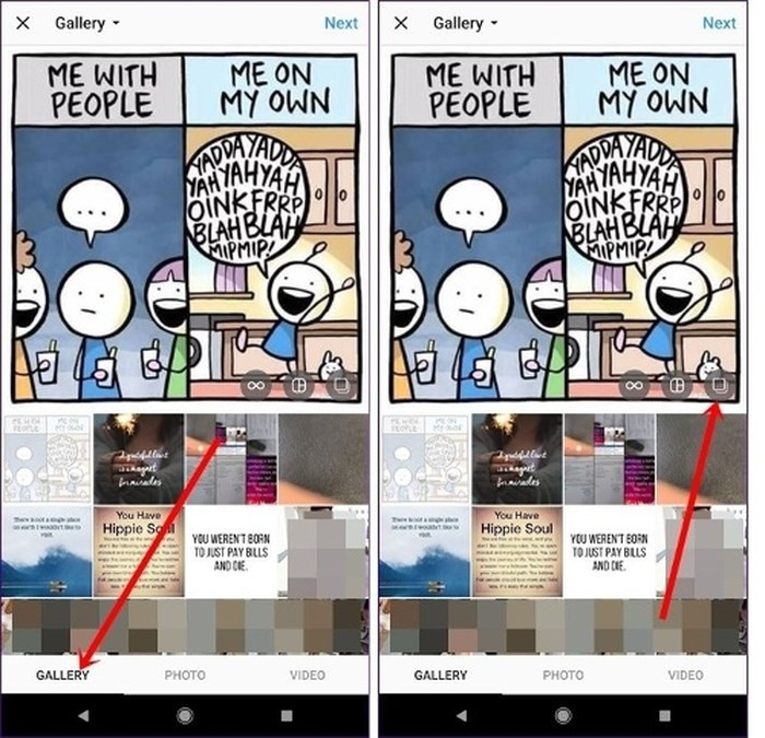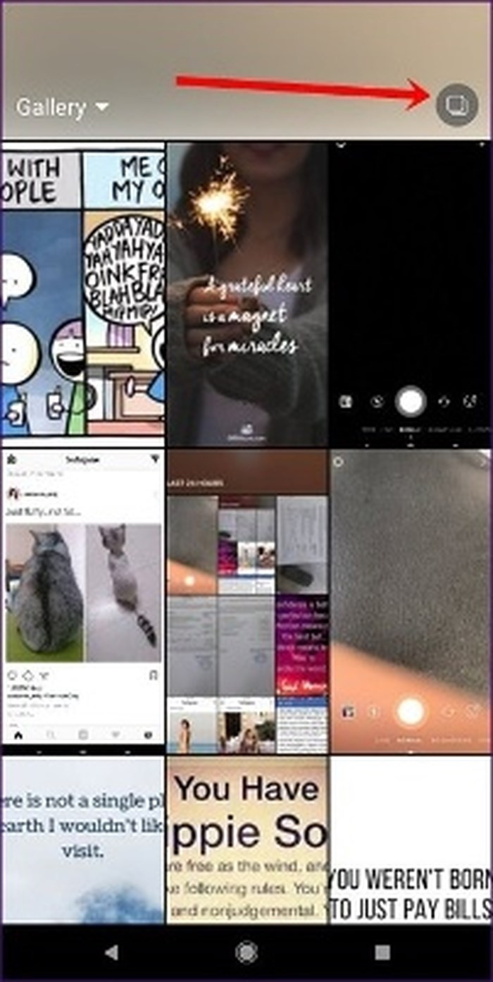 Bước 2: Nhấn tab Gallery, sau đó nhấn vào biểu tượng Multiple photo ở góc dưới cùng bên phải của ảnh hiện tại.