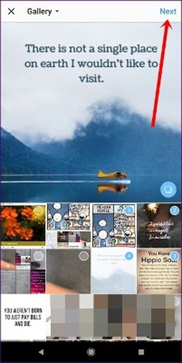 Bước 3: Chọn ảnh bằng cách nhấn vào chúng, một số sẽ được hiển thị bên cạnh mỗi ảnh đã chọn. Đây là thứ tự mà chúng sẽ được tải lên, sau khi chọn xong nhấn nút Next ở trên cùng.