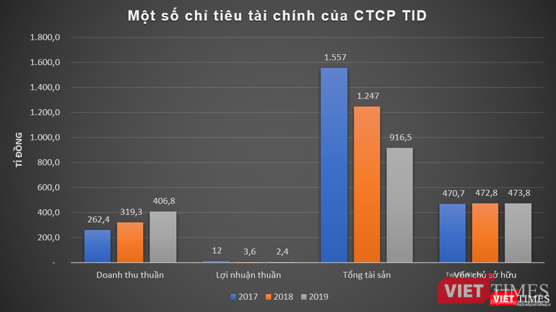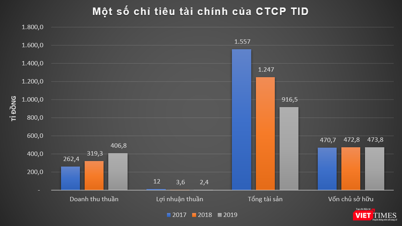 Dữ liệu của VietTimes cho thấy, những năm gần đây, TID có kết quả kinh doanh khiêm tốn, chỉ lãi vài tỉ đồng mỗi năm, đồng thời tỷ suất sinh lời cũng càng ngày càng giảm. Khả quan nhất là năm 2017, công ty này ghi nhận doanh thu thuần đạt 262,4 tỉ đồng, lãi thuần ở mức 12 tỉ đồng, tương ứng với biên lợi nhuận 4,5%.