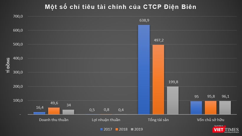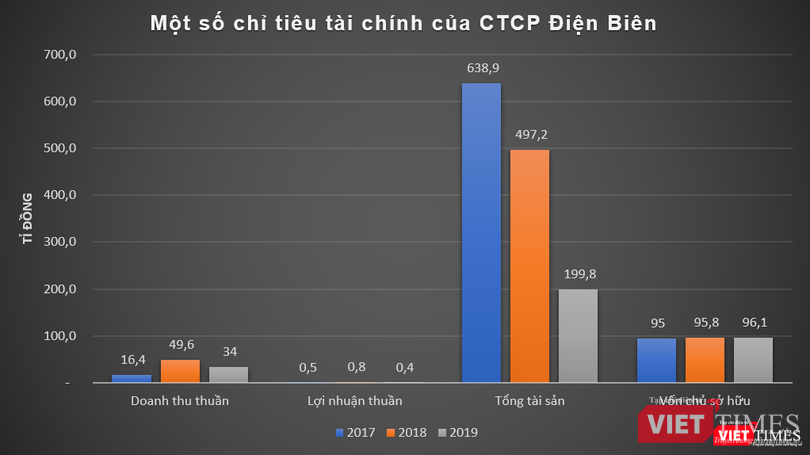 Dữ liệu của VietTimes cho thấy, vài năm gần đây, CTCP Điện Biên ghi nhận lãi thuần chỉ ở mức vài trăm triệu đồng/năm dù phát sinh hàng chục tỉ đồng doanh thu. Như năm 2017 và 2018, doanh thu thuần của công ty này lần lượt đạt 16,4 tỉ đồng và 49,6 tỉ đồng, lãi thuần ở mức 0,5 tỉ đồng và 0,8 tỉ đồng.