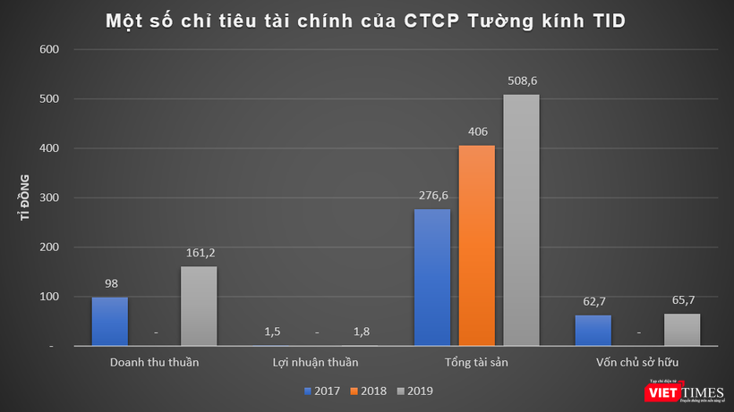 Tính đến cuối năm 2019, quy mô tổng tài sản của Tường kính TID đạt 508,6 tỉ đồng, vốn chủ sở hữu ở mức 65,7 tỉ đồng.