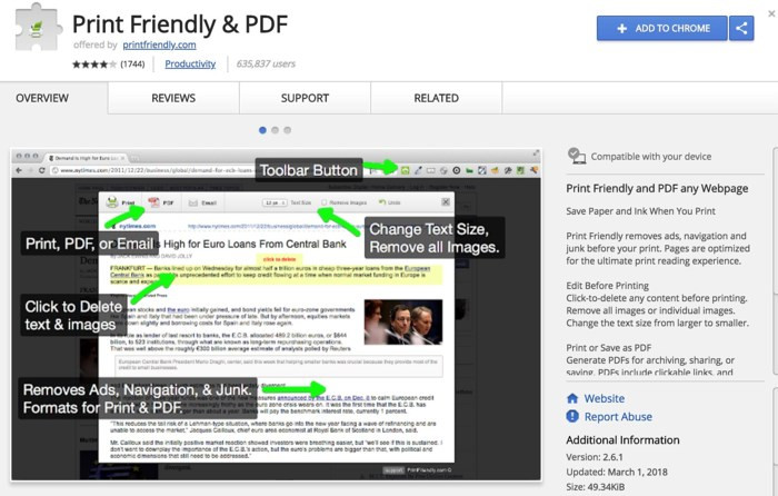 Nếu đang sử dụng Google Chrome, bạn có thể cài đặt thêm tiện ích mở rộng Print Friendly & PDF tại địa chỉ http://bit.ly/2G5jIDq, Add to Chrome (thêm vào Chrome) > Add extension (thêm tiện ích).