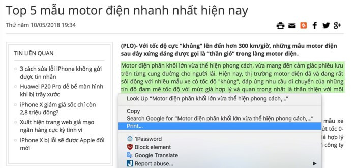 Bên cạnh đó, người dùng còn có thể chọn in một đoạn văn bản bất kì thay vì toàn trang. Tính năng này vốn không phải là mới, tuy nhiên, mỗi trình duyệt lại có thao tác thực hiện khác nhau.