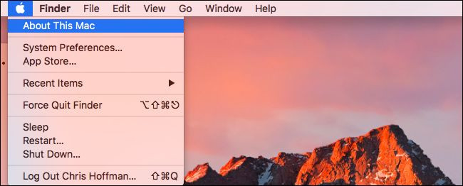 Nếu máy Mac của bạn đang hoạt động bình thường, việc tìm số serial sẽ rất dễ dàng. Bạn chỉ cần nhấp vào biểu tượng hình quả táo khuyết ở phía trên, góc phải màn hình và chọn About This Mac.