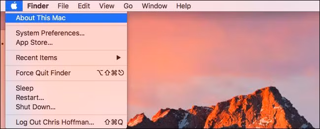 Nếu máy Mac của bạn đang hoạt động bình thường, việc tìm số serial sẽ rất dễ dàng. Bạn chỉ cần nhấp vào biểu tượng hình quả táo khuyết ở phía trên, góc phải màn hình và chọn About This Mac.