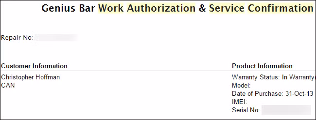 Ngoài ra, nếu bạn đã từng sử dụng dịch vụ bảo hành hoặc một dịch vụ nào đó của cửa hàng Apple hoặc các đại lý Apple ủy quyền, bạn sẽ có thể tìm thấy số serial trong email xác nhận dịch vụ của họ.