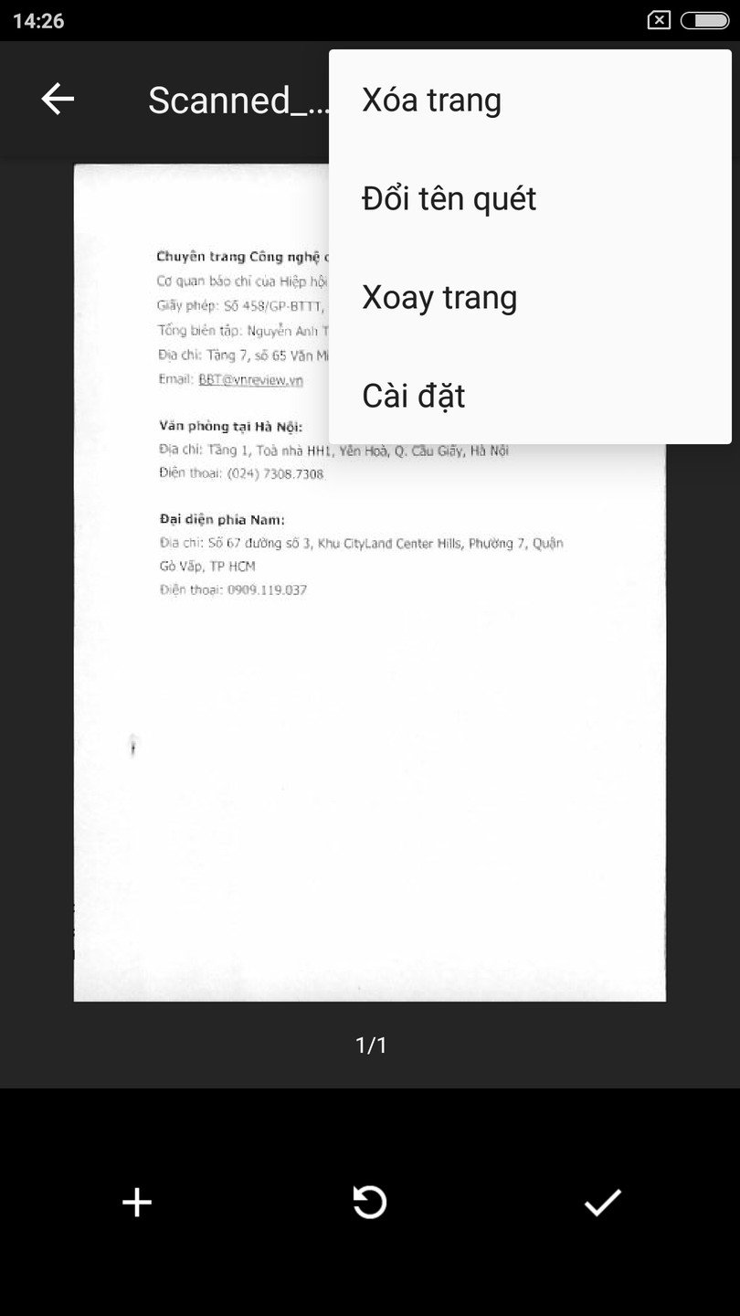 Cuối cùng, bạn có thể xóa, đổi tên, và xoay bản scan nếu muốn bằng cách nhấn nút hình 3 dấu chấm ở phía trên, góc phải.