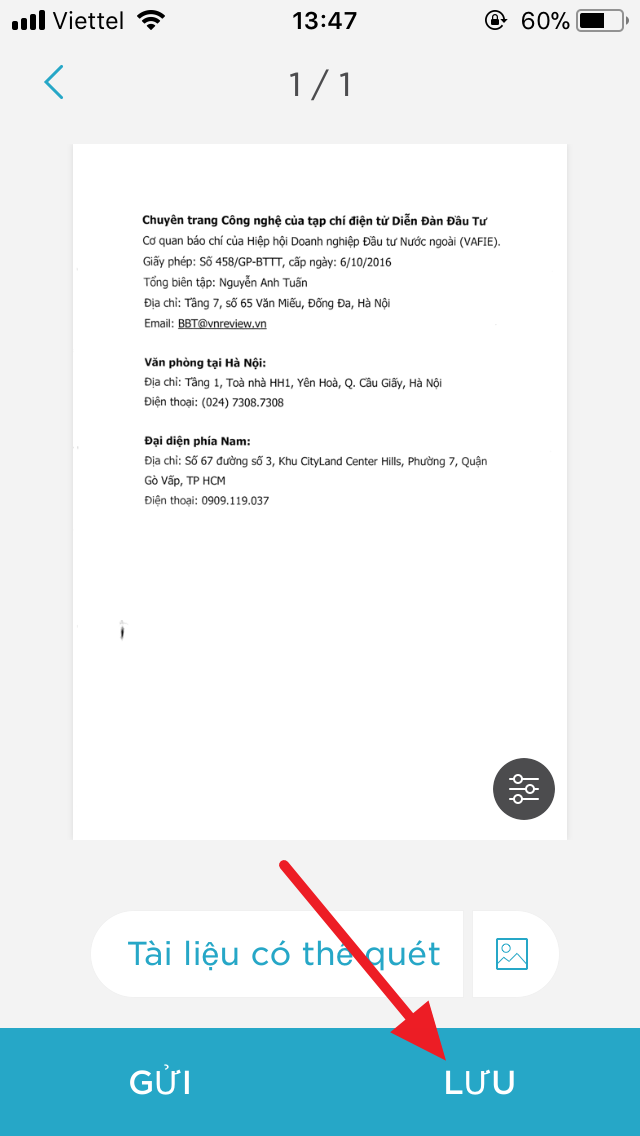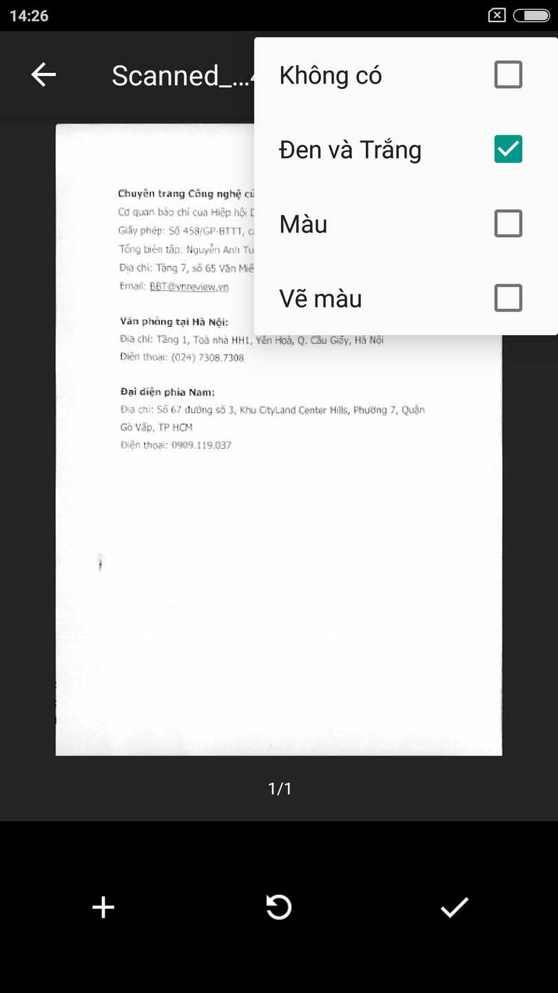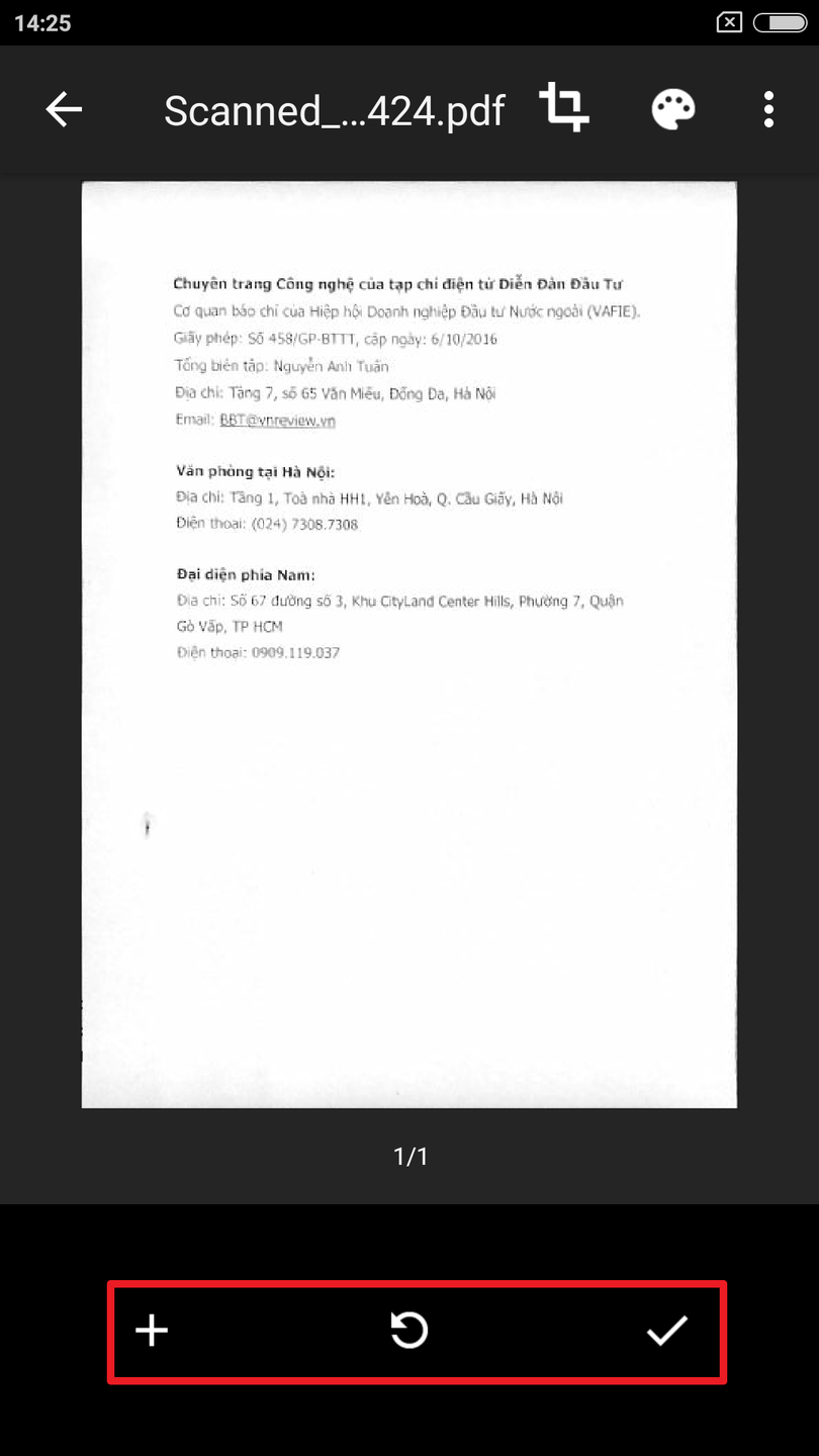 - Nút hình dấu cộng để scan thêm những trang tài liệu khác.