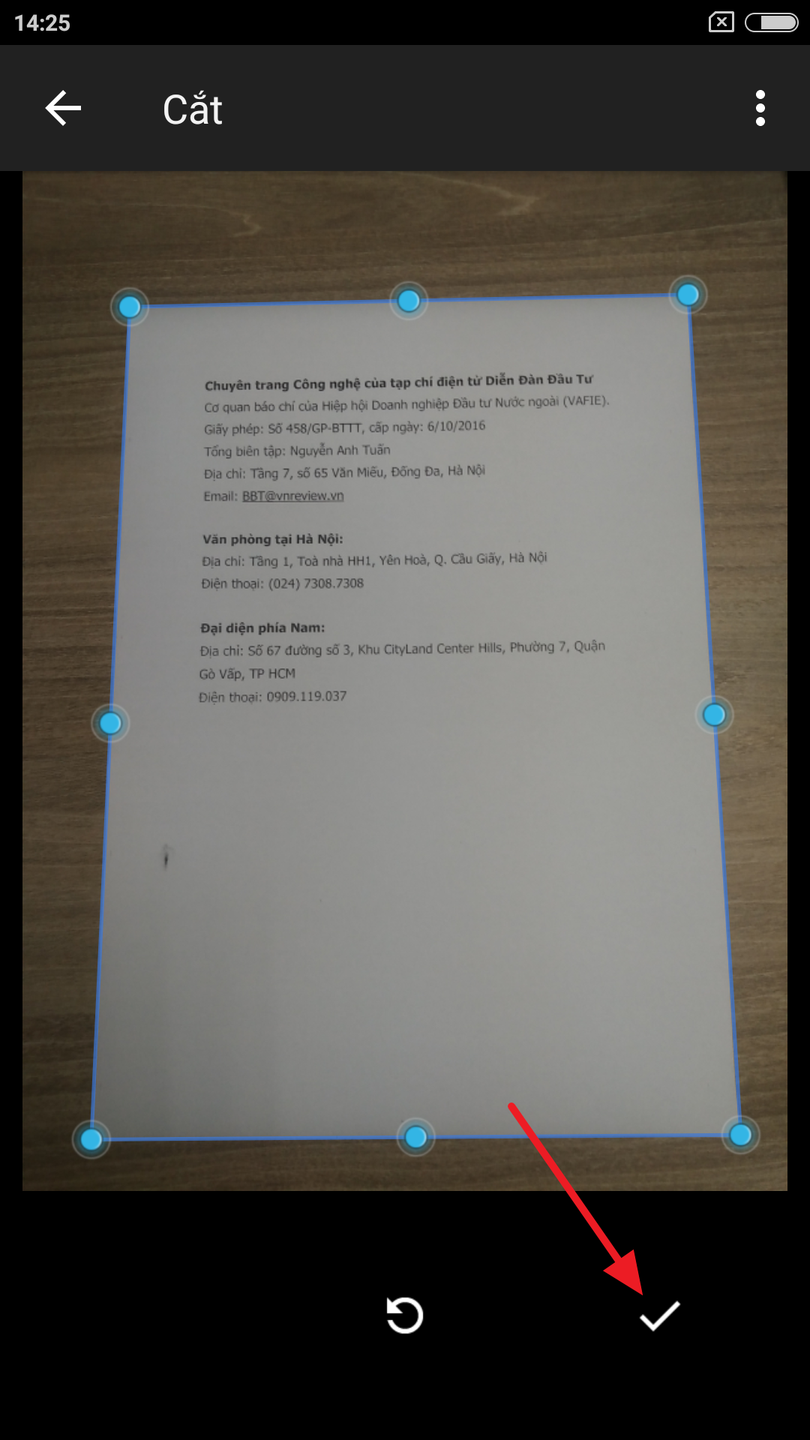 Khi hoàn tất, bạn nhấn nút hình dấu kiểm ở phía dưới, góc phải.