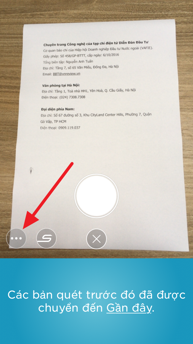 Nếu muốn scan tài liệu hoặc bật đèn flash thủ công, bạn nhấn nút hình 3 dấu chấm bên trái.
