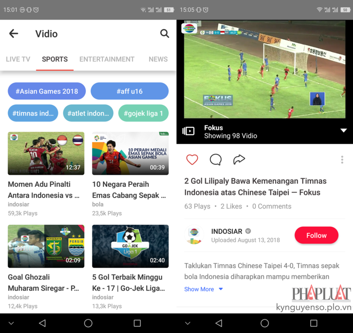Giao diện của chương trình khá đơn giản với các mục gồm Live TV, Sports, Entertainment, News… Nếu chỉ quan tâm đến các trận bóng đá trong khuôn khổ Asian Games 2018, bạn hãy nhấp vào mục Live TV để xem trực tiếp. Tất nhiên, vì xem trực tiếp từ kênh của Indonesia nên bạn sẽ không thể theo dõi phần bình luận bằng tiếng Việt.