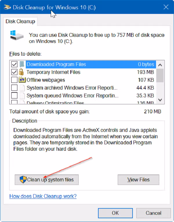 Bước 3: Khi bạn thấy hộp thoại sau, hãy nhấn nút Clean up system files.