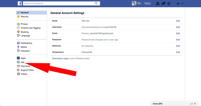 4. Ở mỗi mục của phần Ads, click vào nút "edit" - chỉnh sửa