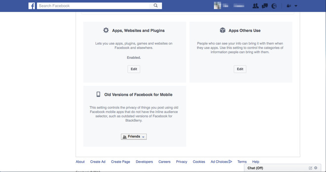7. Tiếp theo là đối với những ứng dụng, ấn vào biểu tượng "cái khoá" ở phía trên bên phải của trang Facebook