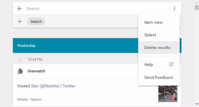 Việc cuối cùng cần làm là bấm vào biểu tượng Options (ba chấm tròn dọc) ở thanh Tìm kiếm rồi chọn “Delete Results” (Xóa kết quả).
