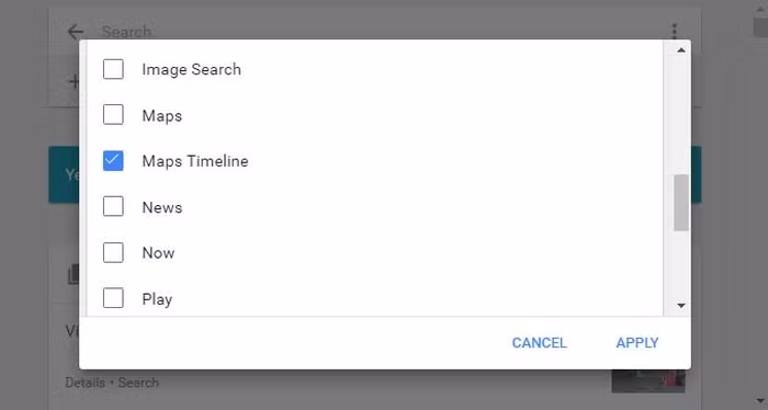 Mở bộ lọc, tìm ứng dụng bạn muốn xóa, chẳng hạn trong ảnh trên là bản đồ. Nếu không muốn Google nắm mọi dữ liệu vị trí nơi bạn từng đến, bạn có thể muốn xóa chúng.
