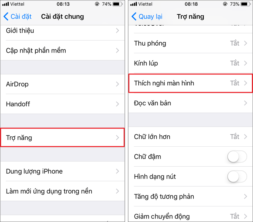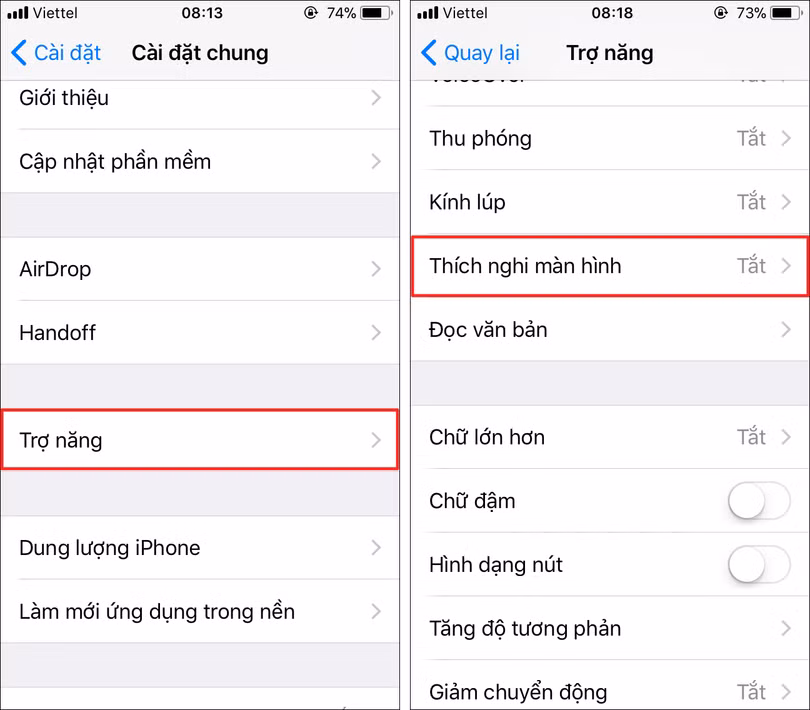 Thay vào đó, bạn cần vào Settings (Cài đặt) > General (Cài đặt chung) > Accessibility (Trợ năng) > Display Accommodations (Thích nghi màn hình) > chọn Enable (Bật)/Disable (Tắt) như mong muốn tại muc Auto-Brightness (Độ sáng tự động).