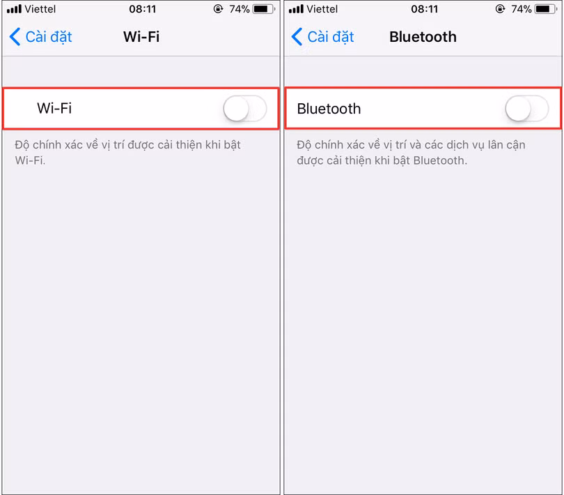 Các nút Bluetooth và WiFi trên Control Center (Trung tâm kiểm soát) không tắt hẳn Bluetooth và WiFi. Thay vào đó, nó chỉ ngắt kết nối của điện thoại, trong khi vẫn quét để tìm kiếm tín hiệu Bluetooth và WiFi.