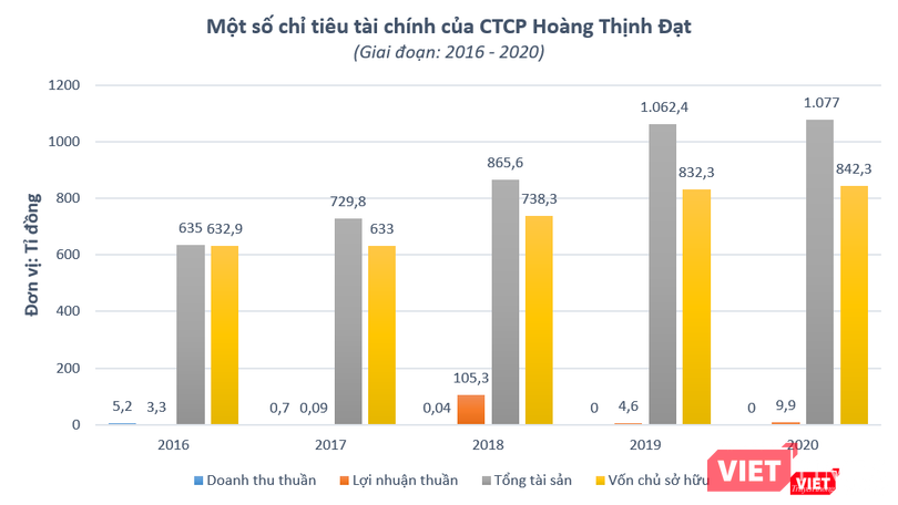 Như năm 2018, doanh thu thuần của Hoàng Thịnh Đạt chỉ là 40,9 triệu đồng, trong khi lợi nhuận lại lên đến 105,26 tỉ đồng. Các năm 2019 và 2020, doanh nghiệp này không ghi nhận doanh thu, lần lượt báo lãi 4,6 tỉ đồng và 9,9 tỉ đồng.