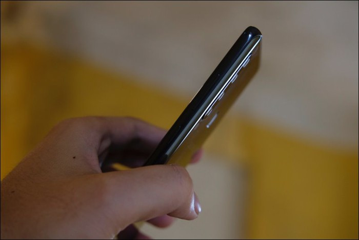 Khung kim loại tiêu chuẩn chắc chắn bao quanh mặt kính giúp cảm giác cầm máy chắc chắn.