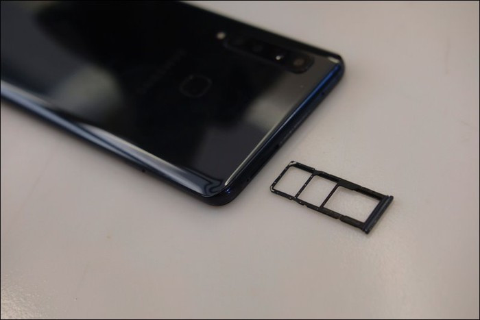 Máy hỗ trợ hai SIM với khay đựng SIM đặt phía đỉnh máy.