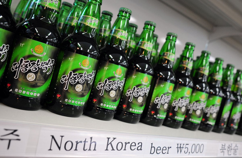Đi thêm vài kilomet nữa, có một cửa hàng bán đồ lưu niệm của Hàn Quốc có bán cả bia Triều Tiên.