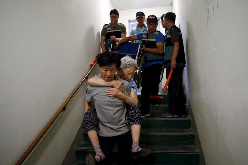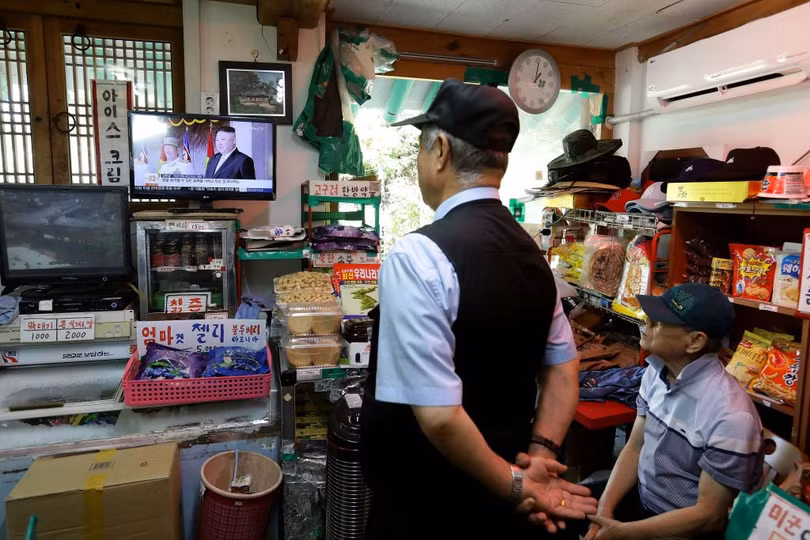 Tại đây, những người Hàn Quốc đang xem thông báo về việc Triều Tiên thử tên lửa trên truyền hình trong một cửa hàng.
